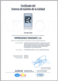 En 1999, Transkrit a obtenu la certification de qualité ISO 9002, prouvant que notre entreprise, à tous les niveaux, a misé résolument sur un travail qui soit chaque jour meilleur.